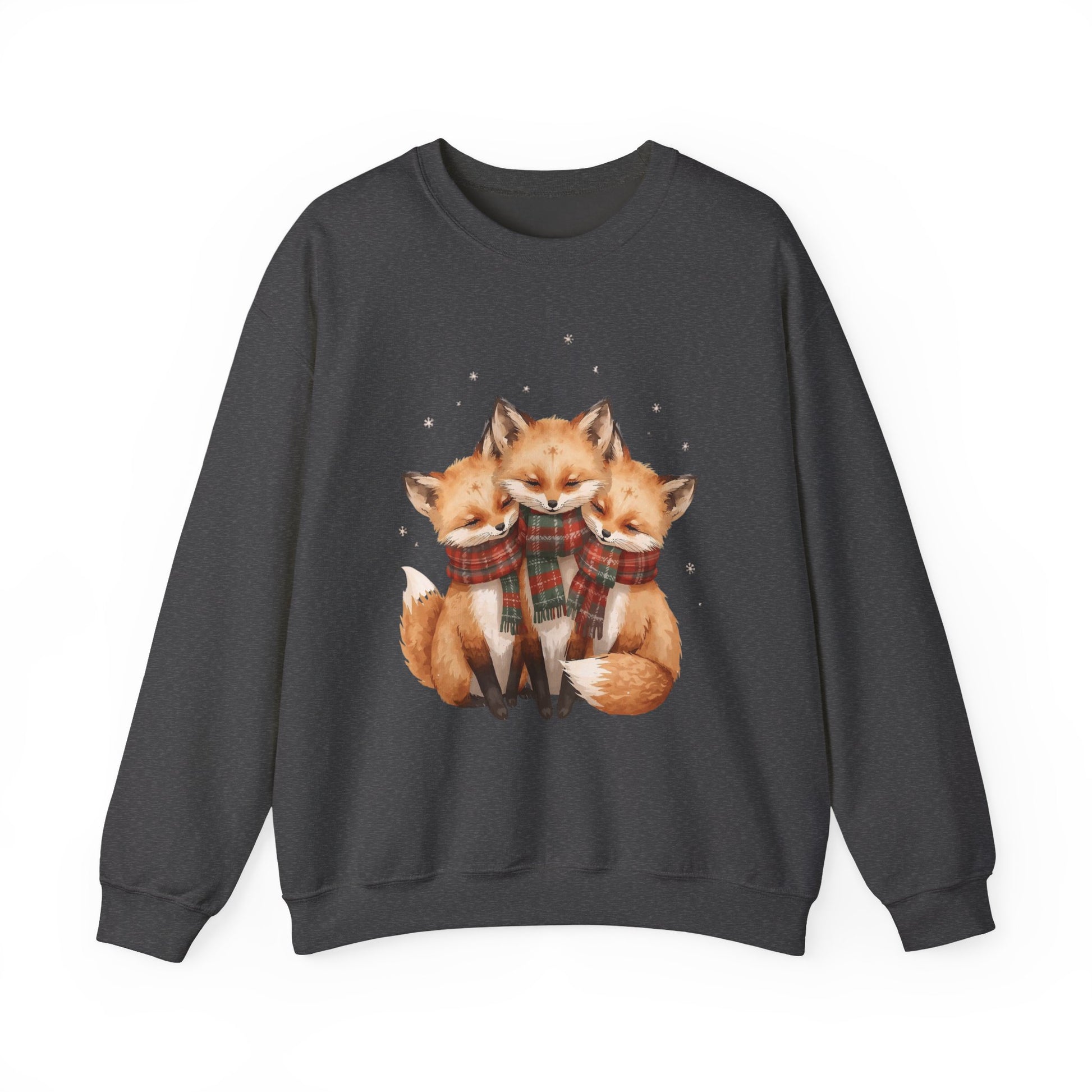 Fox Family Crewneck Sweatshirt - Cozy Plaid Scarf Foxes, Cute Winter Gift
