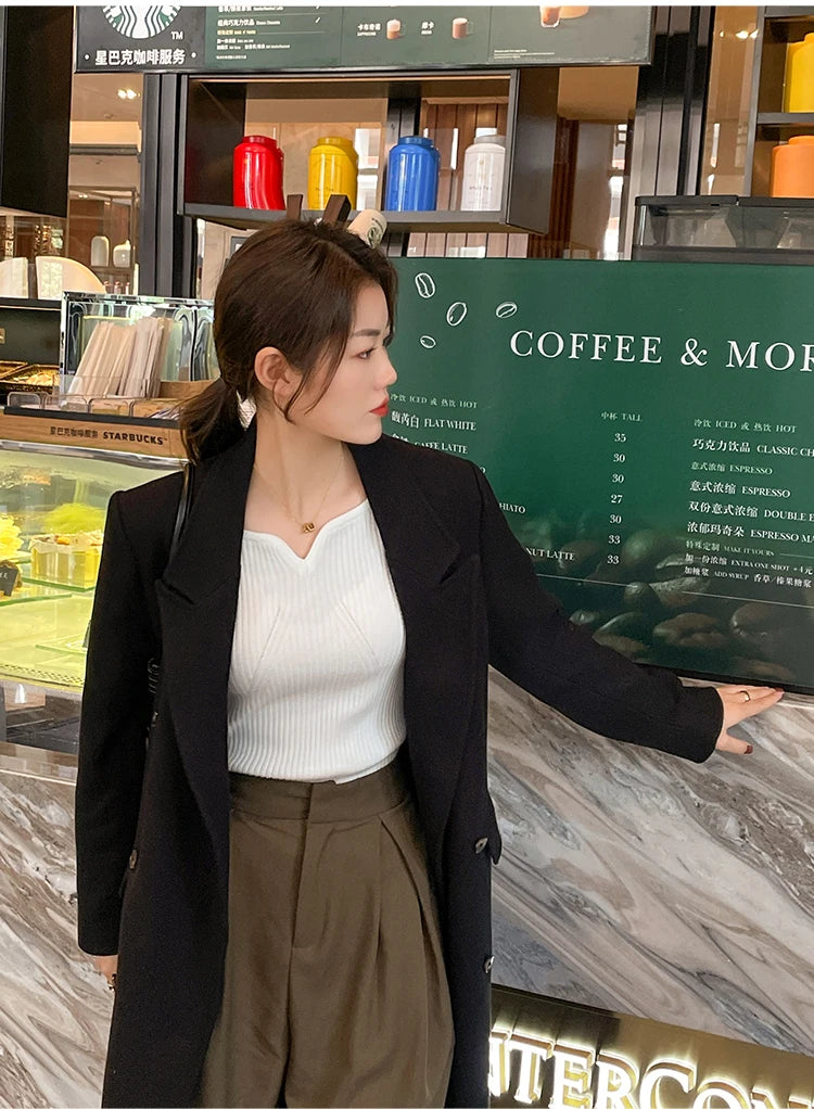Slim V-Neck Ribbed Knit Sweater – Autumn/Winter